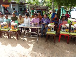 សម្ភារៈដែលបានចែកជូនលោកតាលោកយាយ មានអង្ករ ១០ គីឡូ .កន្ទេល១ . ស្ករសរ១គីឡូ .អំបិល១គីឡូ .ប៊ីចេងកន្លះគីឡូ. និងថវិកា ១ម៉ឺនរៀល ក្នុងនោះក៍បានផ្ដល់ជូនរទះរុញជនពិការមួយគ្រឿងដល់លោកយាយម្នាក់ដែលពិការដើរមិនរួចផងដែរ ។ សូមវត្ថុសាកសិទ្ធិក្នុងលោកតាមថែរក្សាបីប៉ាច់លោកស្រីព្រមទាំងស្វាមីគ្រួសារក្រុមការងារលោកស្រី សូមជួមតែសំណាងល្អសុខភាពល្អជារៀងរហូត ៕