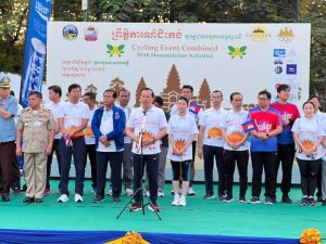 ឯកឧត្តម ហួត ហាក់ រដ្ឋមន្ត្រីក្រសួងទេសចរណ៍ បានរៀបចំព្រឹត្តិការណ៍ ជិះកង់ផ្សារភ្ជាប់នឹងសកម្មភាពមនុស្សធម៌ ក្រោមប្រធានបទ«រួមគ្នាដើម្បីកម្ពុជា ក្នុងរដូវកាលសាមគ្គី» (Together for Cambodia in Solidarity Season) ក្នុងគោលបំណងពង្រឹងកម្លាំងសាមគ្គីភាព ជាធ្លុងមួយ និងពង្រឹងស្មារតីឯកភាពផ្ទៃក្នុង ព្រមទាំងចូលរួមសកម្មភាពមនុស្សធម៌ដើម្បីជួយដល់គ្រួសារ ភៀសសឹកនៅក្នុងគ្រាដ៏លំបាក។ ឯកឧត្តមបន្តថា តាមការរៀបចំពីដំបូង ក្រុមការងាររំពឹងថា នឹងមានអ្នកចូលរួមចំនួន ១ពាន់នាក់ ប៉ុន្តែត្រឹមរយៈពេល៤ថ្ងៃប៉ុណ្ណោះ ចំនួនអ្នកចុះឈ្មោះមានដល់ជាង២ពាន់នាក់ និងមាន២០ជាតិសាសន៍ផ្សេងៗគ្នាមកចូលរួម ដែលនេះ បានបង្ហាញអំពីស្មារតីសាមគ្គីភាព និងឯកភាពផ្ទៃក្នុង រួមគ្នាដើម្បីកម្ពុជា នៅក្នុងរដូវកាលសាមគ្គី។ ឯកឧត្តមរដ្ឋមន្ត្រីបន្ថែមថា ព្រឹត្តិការណ៍កីឡាទេសចរណ៍ ផ្សាភ្ជាប់នឹងសកម្មភាពមនុស្សធម៌នៅថ្ងៃនេះ គឺជាការរួបរួមគ្នាដ៏អស្ចារ្យមួយ ដែលបង្ហាញពីការប្តេជ្ញាចិត្តរបស់កម្ពុជាក្នុងការរួបរួមកម្លាំងសាមគ្គីដ៏រឹងមាំបង្ហាញការជួយទៅវិញទៅមកក្នុងកាលៈទេសៈដ៏លំបាក ទៅតាមវិស័យរៀងៗខ្លួន និងមិនបោះបង់គ្នា (No one is left behind)។ ក្នុងស្មារតីសាមគ្គីភាពនេះ, ឯកឧត្តមរដ្ឋមន្ដ្រី ជឿជាក់ថាយើងទាំងអស់គា្ន ពិតជា អាចឆ្លងផុតការលំបាកមួយនេះបាន។
