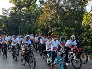 ខេត្តសៀមរាប៖ ក្រសួងទេសចរណ៍ សហការជាមួយរដ្ឋបាលខេត្តសៀមរាប បានរៀបចំព្រឹត្តិការណ៍ជិះកង់ផ្សារភ្ជាប់នឹងសកម្មភាពមនុស្សធម៌ ក្រោមប្រធានបទ « រួមគ្នាដើម្បីកម្ពុជា ក្នុងរដូវកាលសាមគ្គី» បានទាក់ទាញបងប្អូនប្រជាពលរដ្ឋ ទេសចរជាតិ និងអន្តរជាតិប្រមាណ២ពាន់នាក់ មកចូលរួមដើម្បីបង្ហាញអបអសាទរទិវាសន្តិភាពកម្ពុជា និង លើកស្ទួយវិស័យទេសចរណ៍ កាលពីព្រឹកថ្ងៃទី២៨ ខែធ្នូ ឆ្នាំ២០២៥ លើទឹកដីប្រវត្តិសាស្ត្រសៀមរាប.អង្គរ។