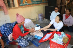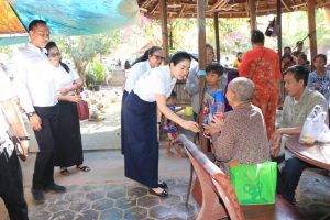 ក្នុងនោះដែរលោកជំទាវក៏បាននាំយកអំណោយរបស់សំណាក់សម្តេចគត្តិព្រឹទ្ធបណ្ឌិត ប៊ុន រ៉ានី ហ៊ុន សែន ប្រធានកាកបាទក្រហមកម្ពុជា ជូនដល់ស្ត្រីមានផ្ទៃពោះ និងទើបសម្រាលកូនថ្មី ម្នាក់ៗ នូវសម្ភារៈបរិក្ខាសម្រាប់កូនង៉ែត ១កន្ត្រក់ និង អង្ករ ២០គក្រ ព្រមទាំងឧបត្ថម្ភ ថវិកា ២០០ដុល្លា ដល់ស្ត្រីមានជម្ងឺរាំរ៉ៃសម្រាប់លាងឈាម ។ ក្នុងនោះលោកជំទាវ ខេង សំវ៉ាដា សមាជិការដ្ឋសភា មណ្ឌលកំពង់ស្ពឺ ឧបត្ថម្ភថវិកាមួយចំនួនផងដែរ ។