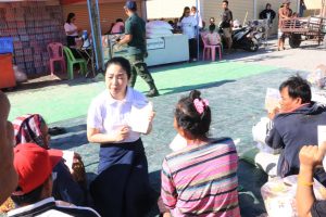 ឆ្លៀតឱកាសនោះដែរលោកជំទាវ ទុយ ជិ ប្រាក់ សោភ័ណ បានជួបសំណេះសំណាលជាមួយបងប្អូនភៀសសឹក ព្រមទាំងបានប្រគល់អំណោយរបស់សប្បុរសជនជាគ្រឿងឧបភោគបរិភោគ និង សម្ភារៈប្រើប្រាស់ ដល់បងប្អូនភៀសសឹក ចំនួន ២៧៨គ្រួសារផងដែរ ៕