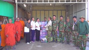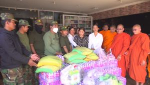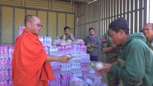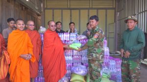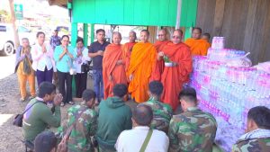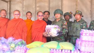សៀមរាប៖ ព្រះសង្ឃនិងសប្បុរសជនក្នុងក្រុងខេត្តសៀមរាបដឹកនាំដោយព្រះយសោធរញាណ ឡោម សុឈាត ព្រះរាជាគណកិត្តិយស និង ជាព្រះគ្រូចៅអធិការវត្តព្រះសិអារ្យ កាលពីថ្ងៃអាទិត្យទី២៩ ខែធ្នូ ឆ្នាំ២០២៥នេះ បាននិមន្តចុះសួរសុខទុក្ខ និងនាំយកគ្រឿងឧបភោគបរិភោគរួមជាមួយនិងបច្ច័យមួយចំនួនដែលបានមកពីចៅអធិការវត្តនិងសប្បុរសជនជិតឆ្ងាយមួយចំនួន នៅក្នុងក្រុងសៀមរាប សម្រាប់ចែកជូនកងទ័ព ដែលកំពុងឈរជើងការពារខ្សែបន្ទាត់ព្រំដែន ក្នុងខេត្តព្រះវិហារ។