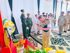 សៀមរាប ៖នៅព្រឹកថ្ងៃព្រហស្បតិ៍ ១២រោច ខែបុស្ស ឆ្នាំម្សាញ់ សប្តស័ក ព.ស ២៥៦៩ ត្រូវនឹងថ្ងៃទី១៥ ខែមករា ឆ្នាំ២០២៦ ស្ថិតក្នុងវត្តមុនធ្យាន ភូមិគោកឫស្សីខាងជើង ឃុំដានរុន ស្រុកសូទ្រនិគម ខេត្តសៀមរាប ដោយអនុវត្តតាមអនុសាសន៍ណែនាំដ៏ខ្ពង់ខ្ពស់របស់ឯកឧត្ដម នាយឧត្ដមសេនីយ៍ ស ថេត អគ្គស្នងការនគរបាលជាតិ លោកឧត្តមសេនីយ៍ទោ ហួត សុធី ស្នងការ នៃស្នងការដ្ឋាននគរបាលខេត្តសៀមរាបបានចាត់ លោកឧត្តមសេនីយ៍ត្រី ស៊ី ជីវ ស្នងការរង ដឹកនាំសហការី ចូលរួមគោរពវិញ្ញាណក្ខន្ធសពលោកអនុសេនីយ៍ឯក សេង សុផាត កងឯកភាព កងការពារព្រំដែនលេខ៤០២ ខាងអូរស្មាច់ ច្រកតាមឿង ដែលបានពលីជីវិតដោយសារពុលផ្សែងពុល នៅសមរភូមិ ។